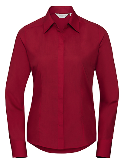 Russell Collection Ladies´ L/S Poly-Cotton Easy Care Fitted Poplin Shirt Classic Red